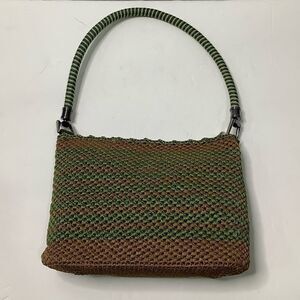 Vintage Unbranded Olive Green/Brown Knit Small Shoulder Baguette Bag