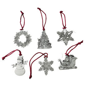 Vintage Unbranded Pewter Christmas Ornaments Set of 6 Silver Holiday Santa Tree