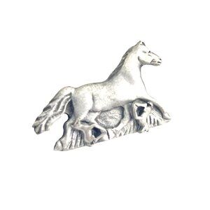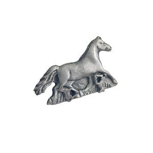 Vintage Unbranded Pewter Finish Mare Brooch with Integrated Foal Pierced Stud Ea