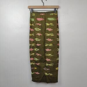 Vintage Unbranded Skirt Size XS Olive Green Tribal Geometric Southwestern Print Midi