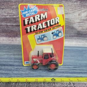 Vintage Unbranded die-cast pull and go red/white farm tractor sealed