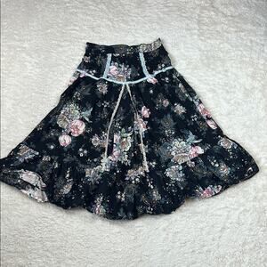 Vintage Unbranded floral print boho prairie a line midi skirt, small