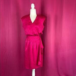Vintage Unbranded hot pink leopard satin wrap dress, size small