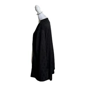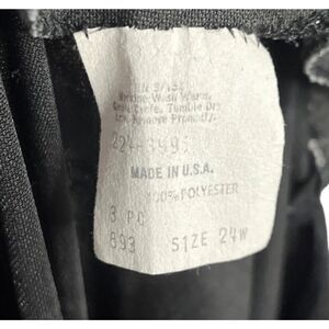 Unbranded women’s vintage black and white robe style top and pants pajama set. Top has no closure- could be adorable with a black or white top underneath. Pants have an elastic waist- no drawstring! US size 24W, made in the USA. Estimated 1970s-80s era. Please verify your measurements below.