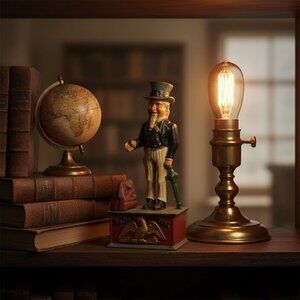 This intricately designed vintage Uncle Sam mechanical coin bank captures the essence of American history. Its cast iron construction ensures durability and timeless appeal. The mechanical action adds a playful yet functional touch, making it a fascinating conversation starter and collector's piece. Ideal to showcase a piece of Americana that reflects a unique blend of art and utility.