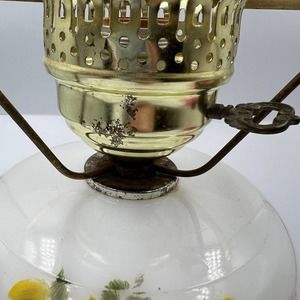 Vintage Underwriters Laboratories Inc. portable lamp, hurricane / parlor lamp, top light only. Switch hits side metal bar as pictured, lamp handpainted floral pattern is chipped and peeling as pictured. Lamp is in good overall condition with wear as pictured.