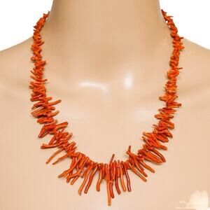 Material is genuine undyed Mediterranean coral in red/orange/salmon. Thin spiky branches.