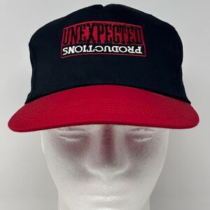Vintage Unexpected Productions Theatre Sports Baseball Hat Cap 90s Seattle Improv Comedy Pike Place Market Five Panel A-Frame Strapback Black Made In USA