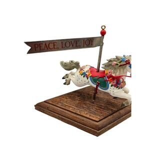 Vintage Unicorn Carousel Horse Hand Painted Figurine Wooden Base Peace Love Joy