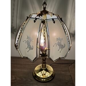Vintage Unicorn Etched Glass Touch Lamp – Brass Base