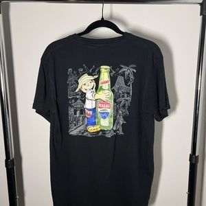 This vintage tee is 100% heavy cotton and in good condtion. The only noticeable flaws are on the back graphic, as pictured.