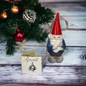 This is an amazing rare find. This ornament was part of a vintage series of Unieboek gnome ornaments that were made of plastic instead of porcelain.