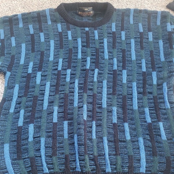 Vintage Uniform Code Sweater Geometric Blue Black Green Cosby XL