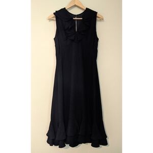 Excellent vintage condition. Black ruffle neckline. Sleeveless. By Shannon Rodgers for Jerry Silverman. Quality, well constructed dress.