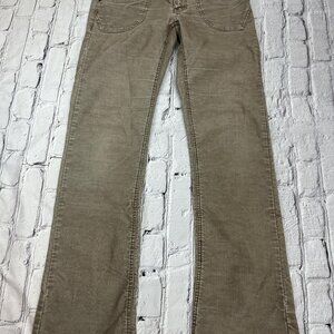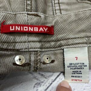 Preloved Union Bay vintage tan corduroy pants in a women's size 7. These low-rise corduroys capture the iconic Y2K and vintage aesthetic with their classic fit and versatile tan color. They're a perfect staple for a retro-inspired or casual everyday outfit.