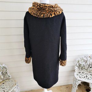 Vintage Union Made 50s/60s Black Silk Lined Wool Coat Faux Leopard collar / cuff