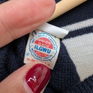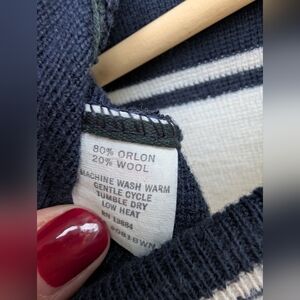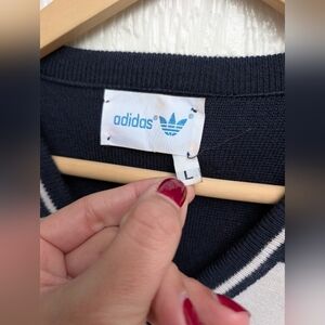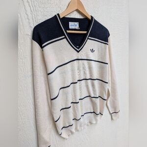 Vintage Union Made Adidas White Navy Stripe Tennis Sweater Women's Size Large