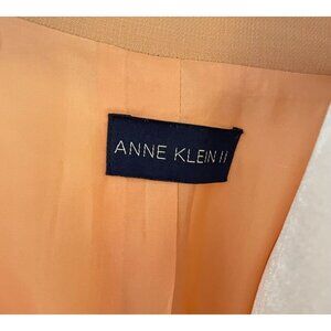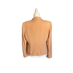 Elevate your professional wardrobe with this elegant vintage Anne Klein II peach blazer. Made from a luxurious Merino wool blend, it offers both comfort and style.