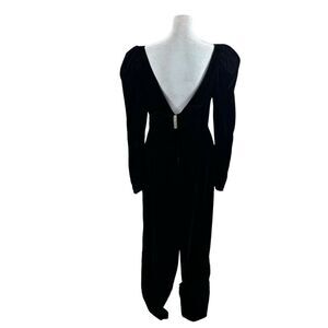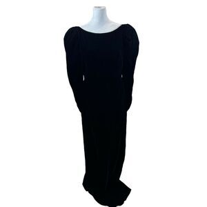 Vintage Union Made Black Velvet Low V Back Bow Detail Floor Length Dress 11/12