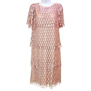 Vintage Union Made Pink Midi Dress Size 10 Layered Tiered Lace Romantic Feminine