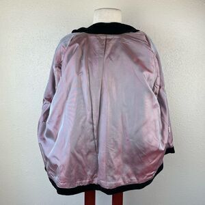 Stylish and unique vintage coat featuring a black velour look and three quarter sleeve style. It is in excellent preowned condition. It measures 22 inches armpit to armpit when closed (like a large) and 25 inches in length from shoulder to hem.