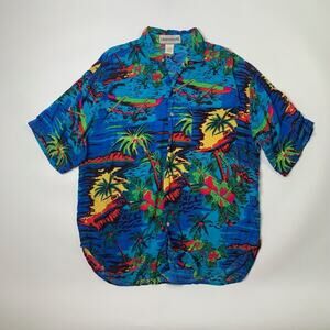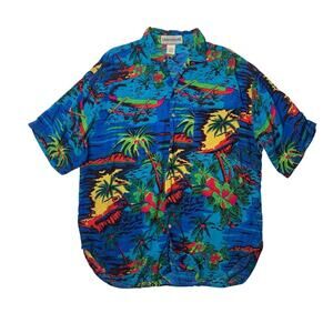 VINTAGE UNIONBAY SHIRT MEN M MEDIUM RAYON EXTRA COMFORT FLORAL TROPICAL HAWAIIAN
