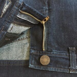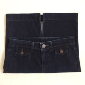 Vintage Uniqlo Slim Fit Above Knee Slit Back Stretch Dark Denim Jean Pencil Skirt