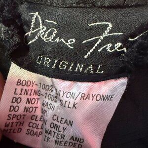 DETAILS: A rare find from Diane Freis Originals, this kimono jacket features exquisite hand-applied embellishments and a rich rayon body with silk lining. The open-front design makes it easy to wear and style.
