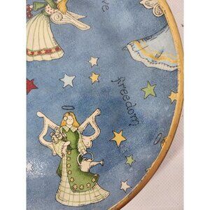 Vintage Unique Angel Peace Love Cherish Freedom Decorative Plate Round Gold Trim