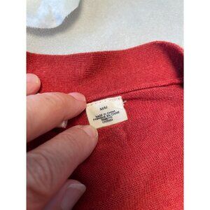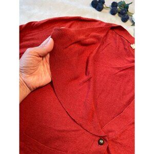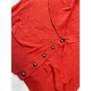 This cardigan sweater by Anthropologie Moth exhibits timeless elegance with its vibrant red hue. The cotton blend material ensures a comfortable fit, while the button-up style adds a touch of sophistication suitable for professional or casual settings.
