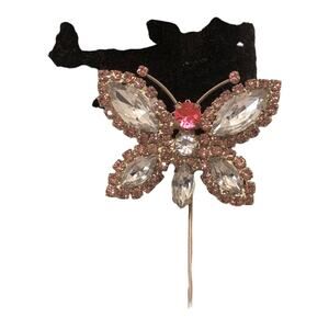 Vintage Unique Eye-Catching Butterfly with Pink and Clear Gemstones Stick Pin