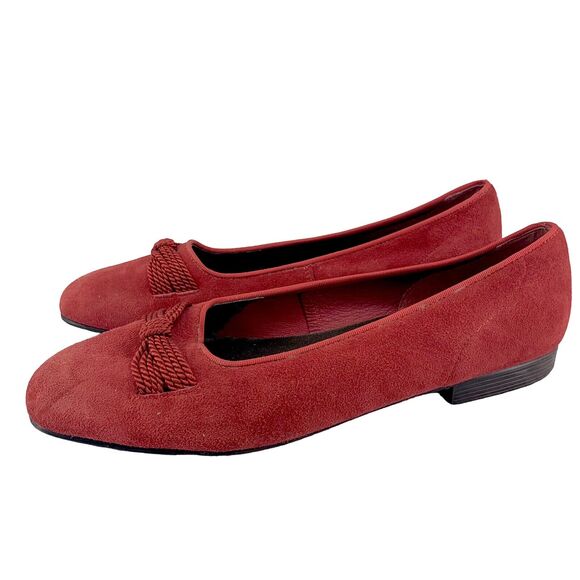 Vintage Unisa Womens Red Suede Flats Slip On Shoes Size 9.5B Roped Bow