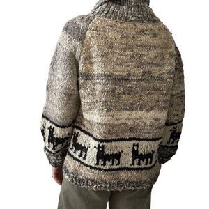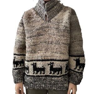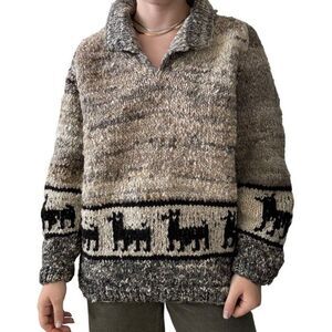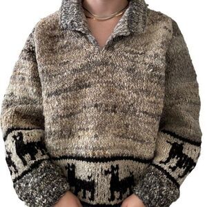 Vintage Unisex 100% Wool Hand Knit Chunky Alpaca Collared Oversized Boho Sweater