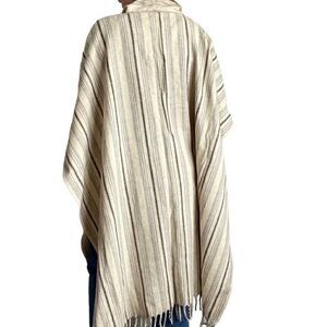 Vintage Unisex 1970s 100% Wool Brown Cream Striped Fringe Hippie Poncho One Size