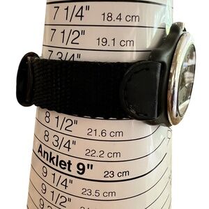 Black Leather and Canvas Strap will fit up to 8 ¼”wrist.