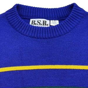 Vintage Unisex B.S.R. Blue Ski Winter Knit Wool Blend Sweater Size Medium (M)