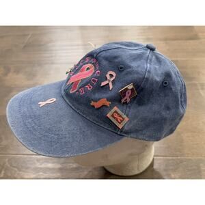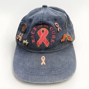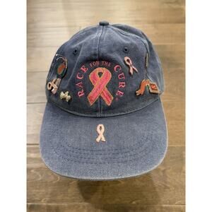 Vintage Unisex Blue Race For The Cure Cancer Adjustable Strapback Hat Cap