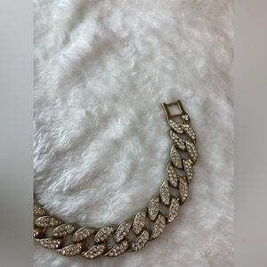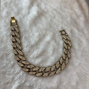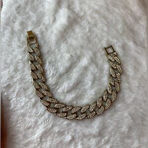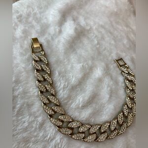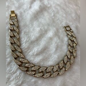 Vintage Unisex Cuban Link Bracelet w/ Clear Stones