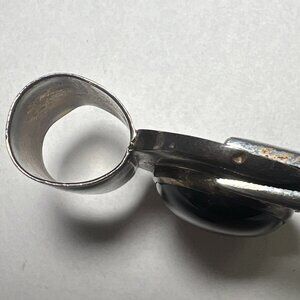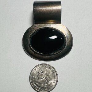 Vintage Unisex Large Artisan Sterling Silver 925 Black Onyx Pendant Slide 43g