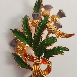 Vintage Unisex Thistle Large Enamel Brooch Pin