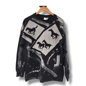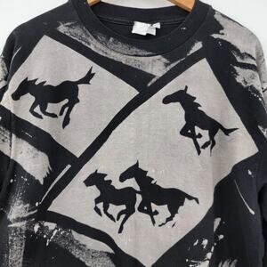 Vintage Unisex Western Horses Cowboy Equestrian Aztec Paint Brush T-Shirt Large