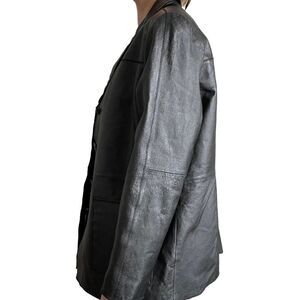 Vintage Unisex Womens 90s Black 100% Leather Matrix Oversized Blazer Jacket Sz L