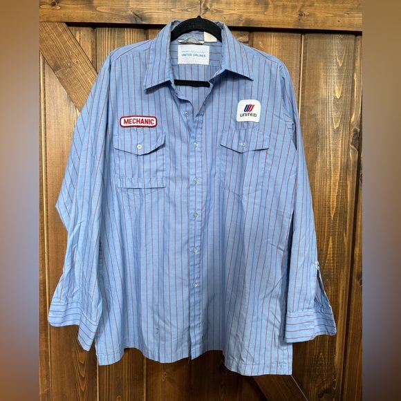 Vintage United Mechanic Work Shirt Sz LG Long Sleeve Blue/Red Stripes Button Up
