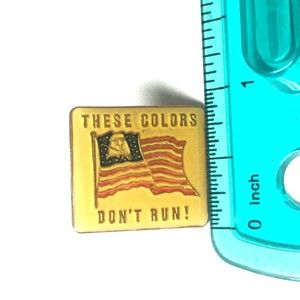 Rare and hard to find enamel military pin featuring a US Flag with an eagle with the saying: These Colors Don't Run USA Flag Eagle enamel pin pinback Keywords: Patriotic Patriotism Courage Strength Honor War Veteran Marines Marine Army Navy Air Force Pilot Sailor Infantry US Vet militaria military