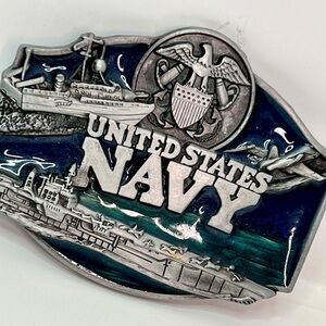 The stylized vintage United States Navy metal belt buckle is a striking accessory for showcasing pride and patriotism.