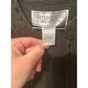 Vintage United States Sweater Wool Blend Olive Green Knit Cardigan Large