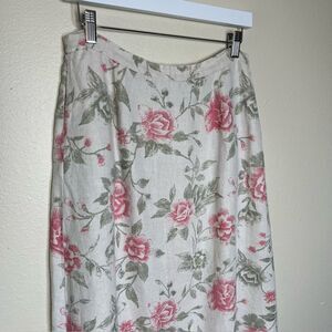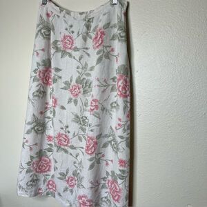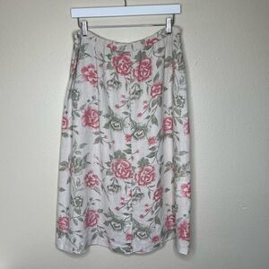 Vintage Units 100% Linen Floral Skirt Cottagecore Tan Pink Women Large Pockets