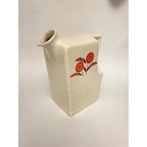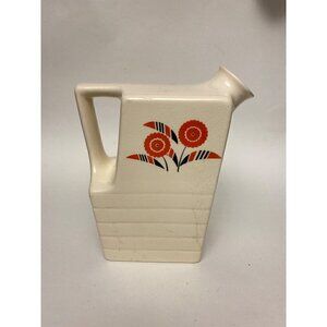 Vintage Universal Potteries Inc. Ceramic White Square Jug Pitcher with red flower print on each side and a handle.