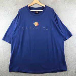 This Universal Studios graphic t-shirt in blue features a unique basketball and planet design. It's ideal for sports enthusiasts or fans of vintage apparel. Crafted from high-quality cotton, this comfortable tee offers a stylish look with its captivating design.