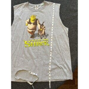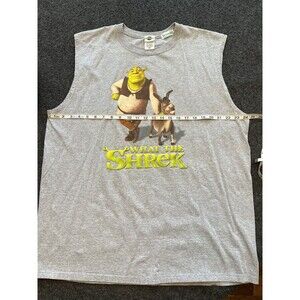 Vintage Universal Studios Shrek 4-D Muscle T Shirt What the Shrek Mens 2XL Gray